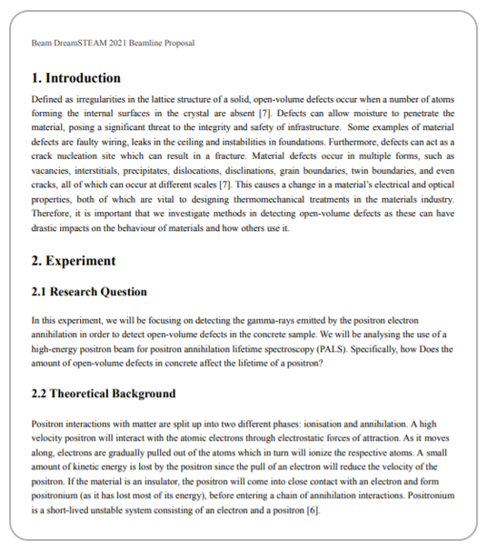 An experiment proposal to test the use of a high-energy positron beam for positron annihilation lifetime spectroscopy (PALS) to detect open-volume defects in concrete for CERN Beamline For Schools 2021.